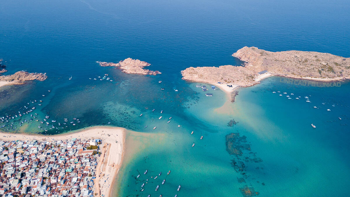 Đứng trên đảo Hòn Khô, du khách còn có thể ngắm nhìn toàn cảnh biển Nhơn Hải và bán đảo Phương Mai, tạo nên khung cảnh thiên nhiên vô cùng hùng vĩ.
